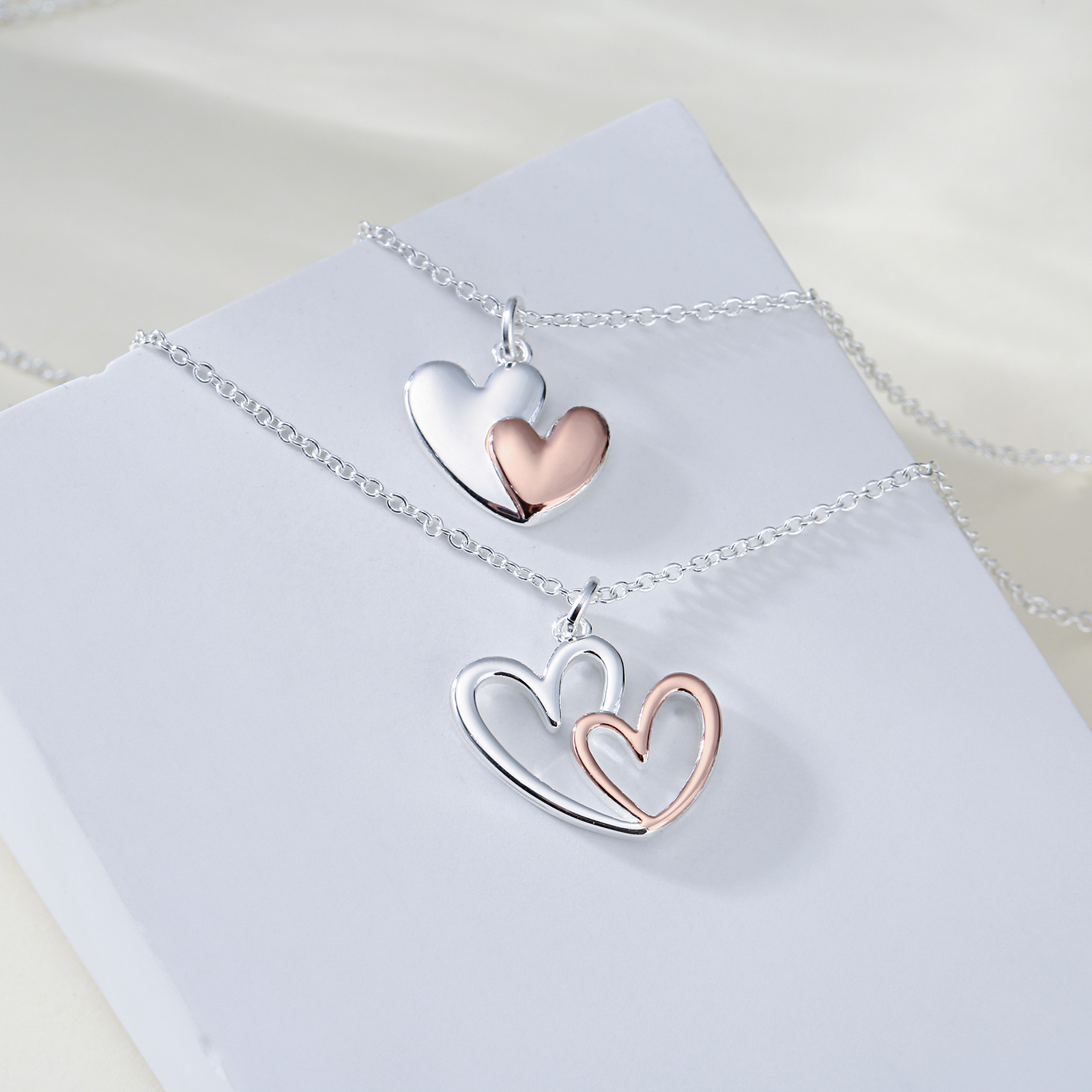 Mother Daughter Friendship Set Love Pendant Two Tone Necklace